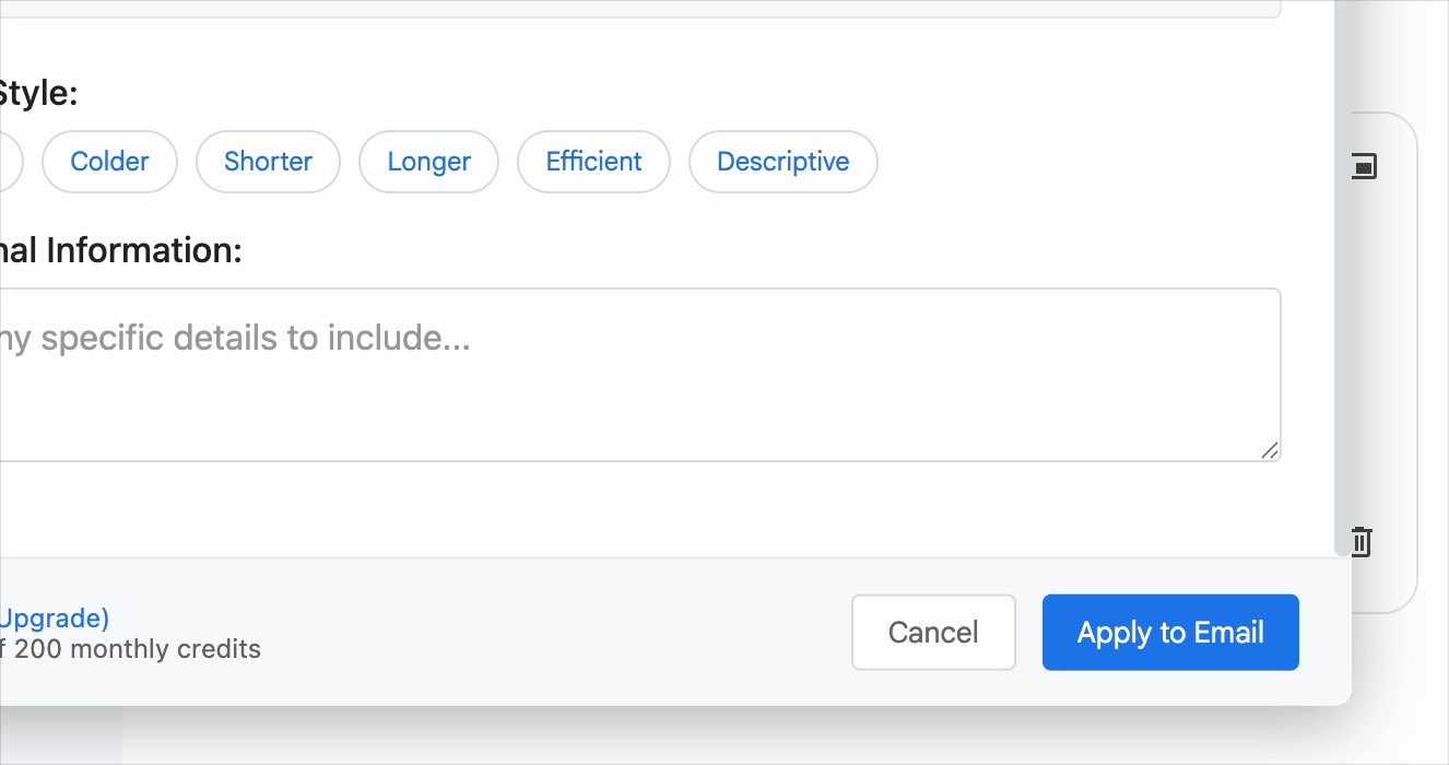 Learns your writing style and adapts tone to be warmer, colder, shorter, or more descriptive.